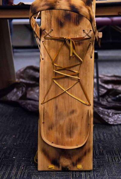 不知道是什么,就问馆员。她说是放婴儿的,可以放在背上,也可以立在墙边或树干上,这样,婴儿就可以立着看世界。