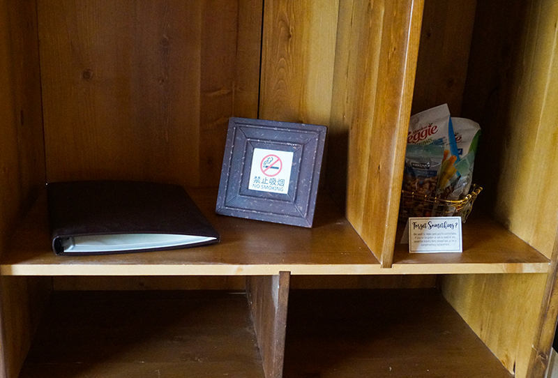 柜格里还有一个中文的禁止抽烟的牌子。看了百思不得其解。为什么只用中文提醒不要抽烟?