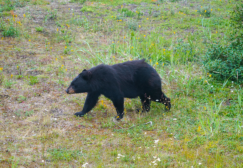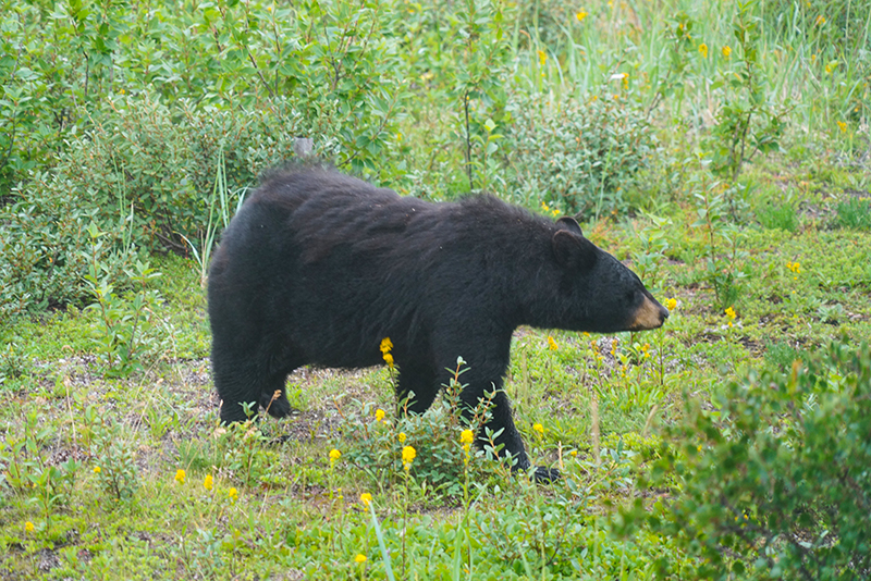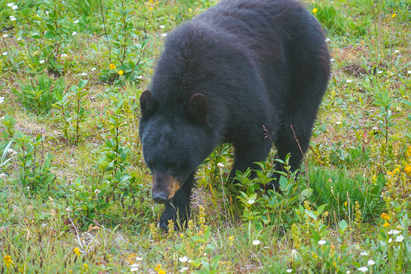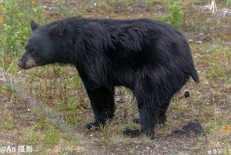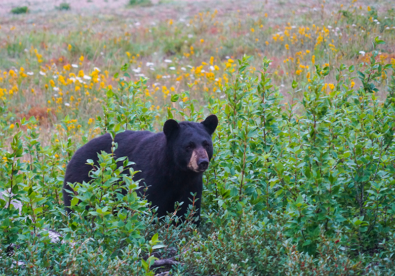 瞧,这只黑熊在野花丛中很是得意,好像在说,你们用那黑洞洞的东西对着我咔嚓,也奈我不得,我就是比你们自由。