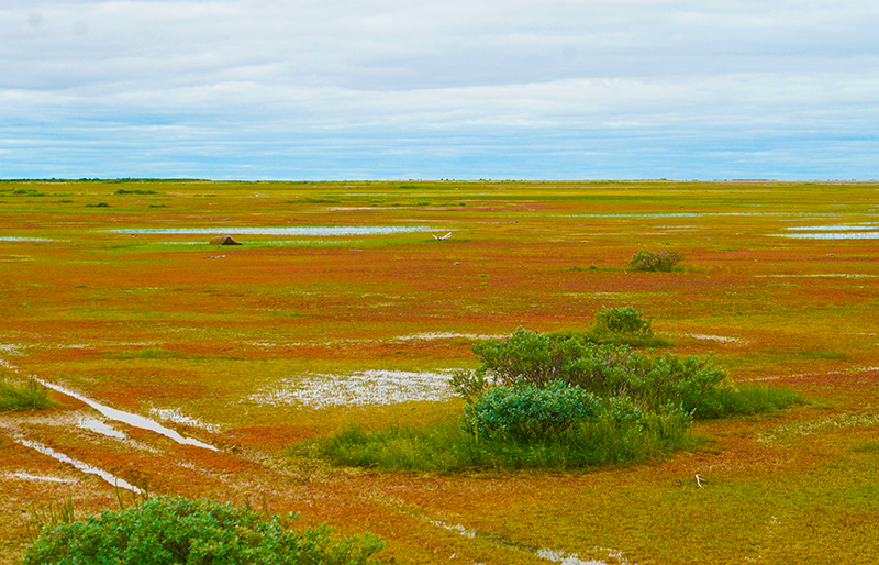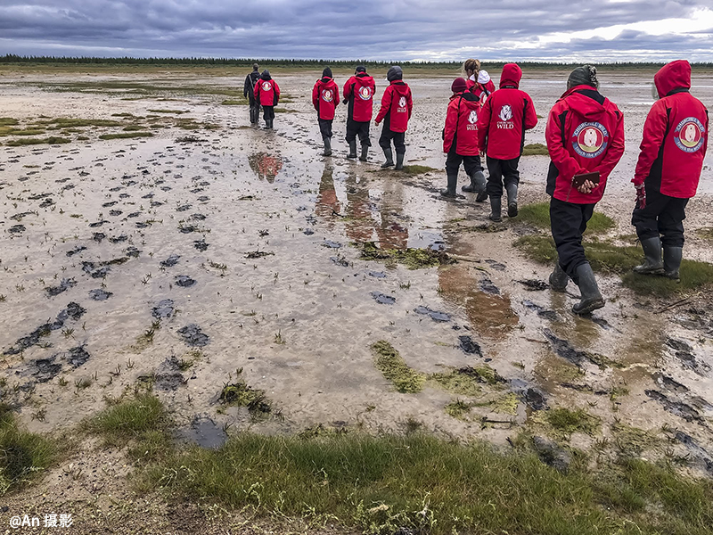 我问过导游为什么不可以开车过去,我们可以少走点路。导游说,我们尽量走老车道,不在荒原上乱开,那样会破坏原生态的。车开的太近,也会惊跑北极熊的。