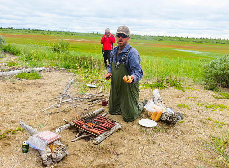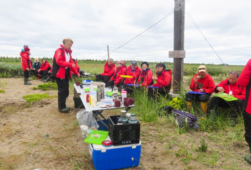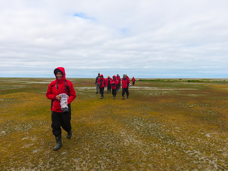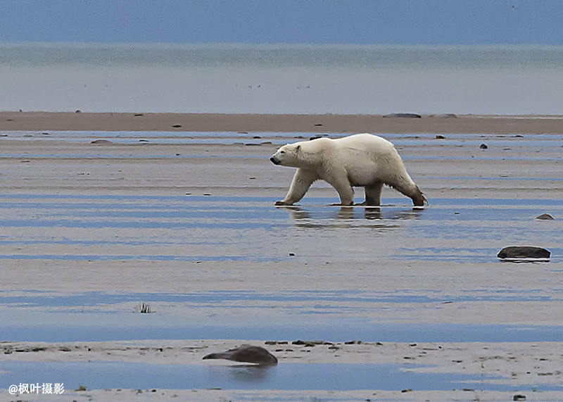 可是早饭时,导游又看到了水边有北极熊,所以决定还是步行到近处的哈德逊湾去看熊。