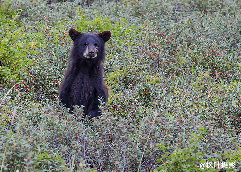 快到木屋了,又看到了那两只经常在木屋周围打转儿的黑熊。记得刚到的那天,看到黑熊,兴奋地不得了,几天下来,已习以为常。
