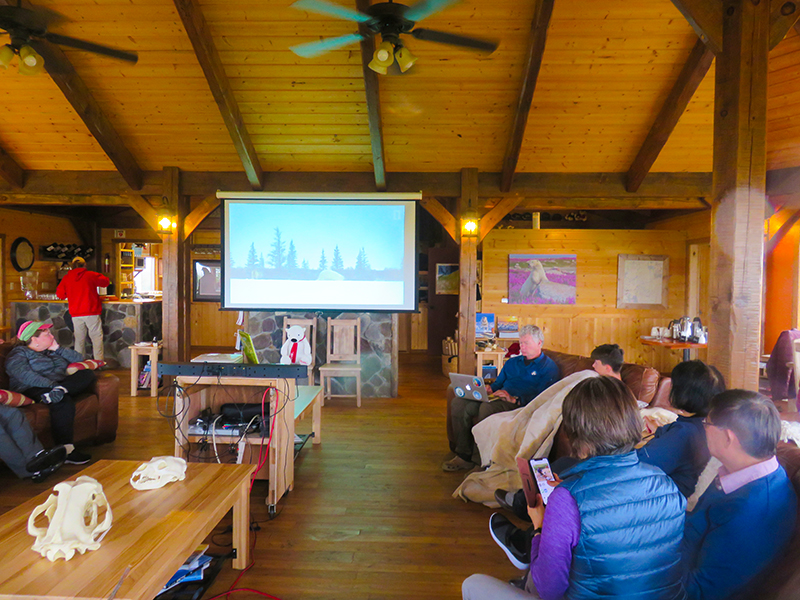 每天晚饭后,大家聚在一起,导游们有时放视频,有时搞讲座。