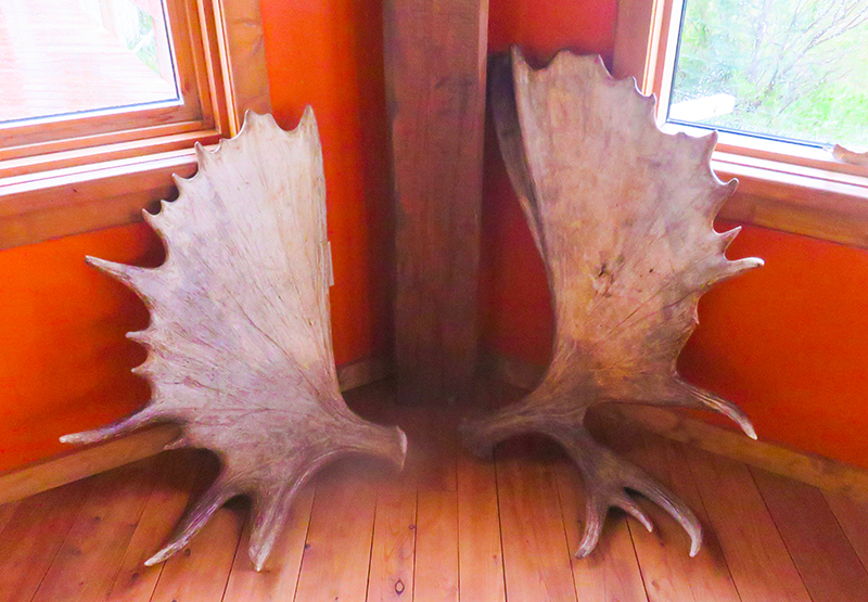 墙角也摆着一对麋鹿角。试着拎了拎,拎不动。
