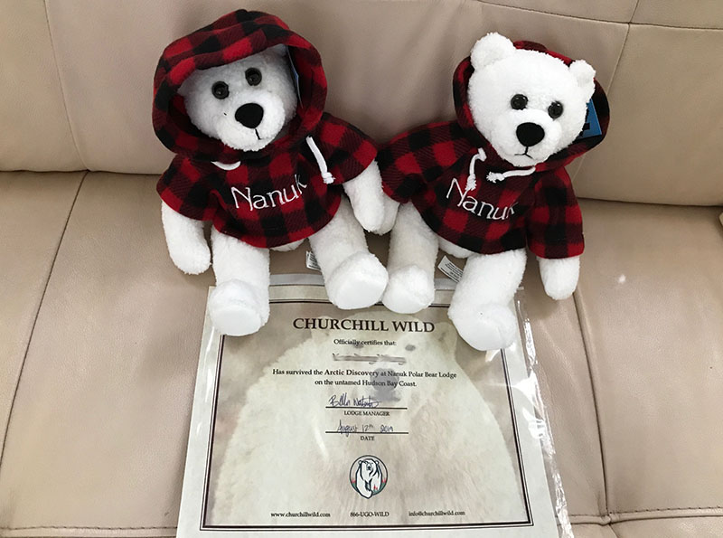 早饭后,我们每个人惊喜地收到了一只小北极熊和北极探险的证书。