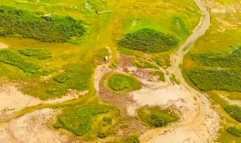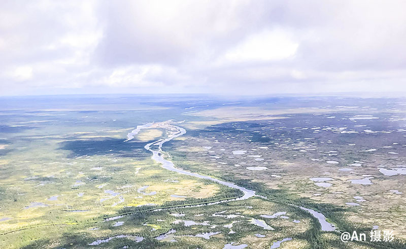 当我们登上回丘吉尔的小飞机后,天突然放晴了。好像老天有意再给我们一次机会,好好看看苔原。