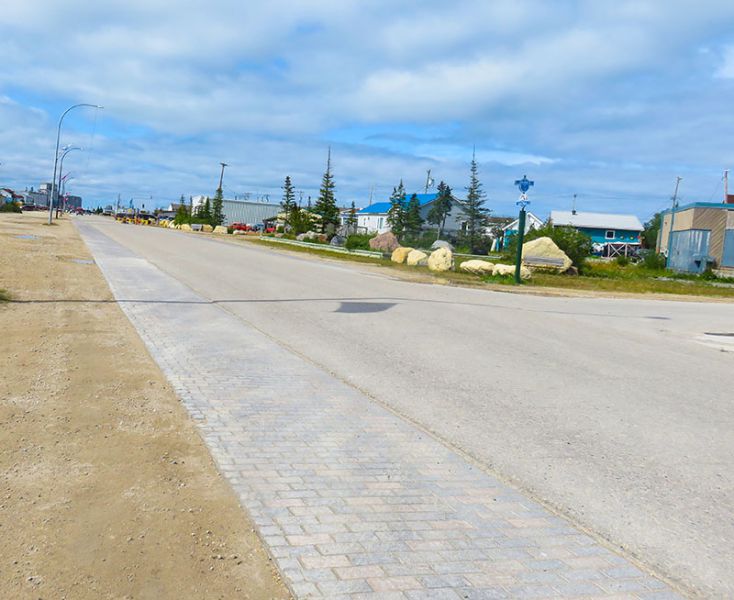 这是丘吉尔的一条主要街道。没有车,也没有行人。因为夏季不是旅游旺季。要到10月、11月才是看北极熊的旺季。现在很冷清。