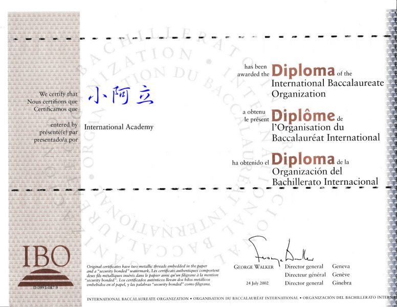 考试总分和高水平总分都达标的(以及其它非专业课程,课外活动,工作经验都符合要求),组织统一发国际学士学位文凭(Diploma of International Baccalaureate)。