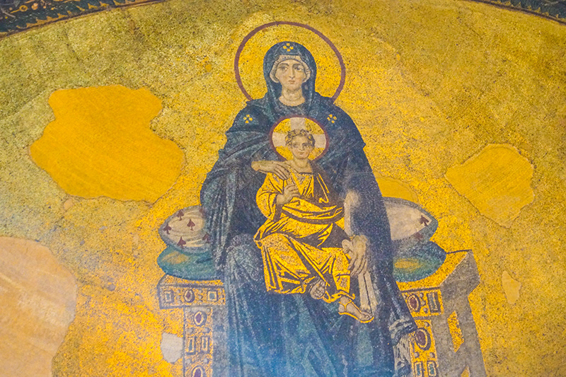 在穹顶的正上方,是一幅马赛克镶嵌画《圣母子》。