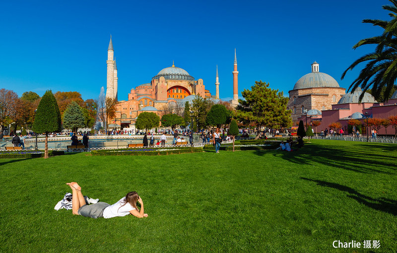 在伊斯坦布尔的最后一天,摄影大师C将军兴奋地拍到了一张美女在圣索菲亚大教堂前草地上的照片。