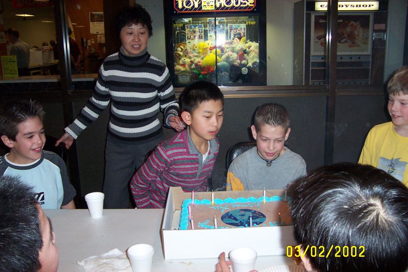 生日爬梯溜冰场也去办过,保龄球场也去办过。后来也在家里办过。
