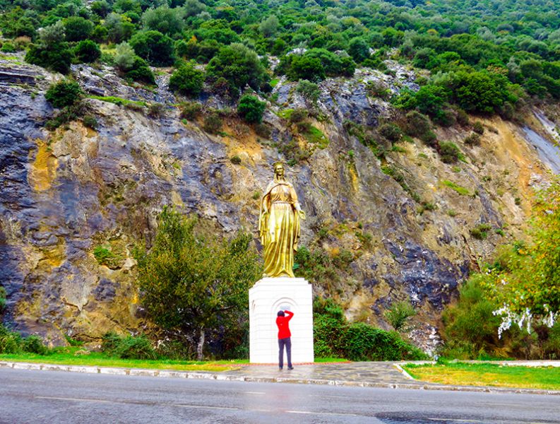 半山腰处,竖立着一座圣母玛丽亚金像。