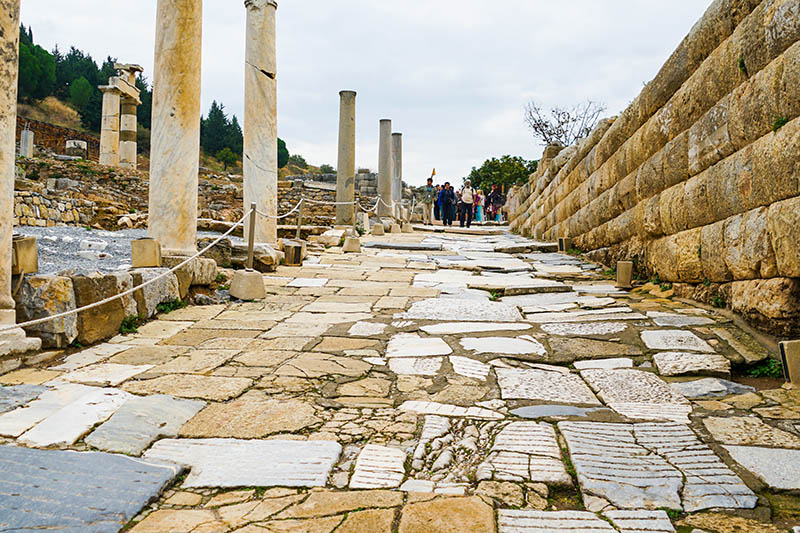这是以弗所三条主要街道之一克里斯特大街(Curetes Street)。古时街道两侧有喷泉,纪念碑,雕像和商店。现在只见断壁残垣。只有宽阔的大理石路面还诉说着昔日的辉煌。