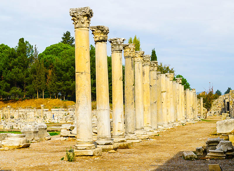 这个古老的罗马城市在六世纪时因港口被注入爱琴海的泥沙淤满而毁灭,如今只剩下了一个巨大的废墟供人参观。