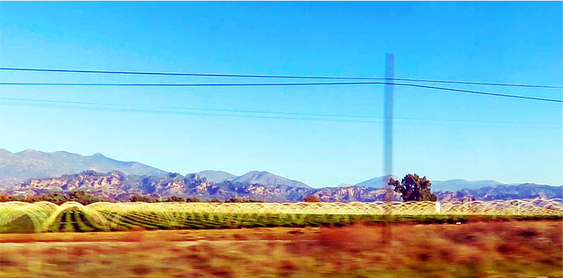 看到大片的农田上有整齐的田垄,绿色的秧苗,还有一排排拱形架子。从晃动的车里拍的照片也不清楚,不知道种的是什么。只是对这一眼望不到边的拱形架子感到震惊。这么大的面积,恐怕是大型农场的耕地吧?