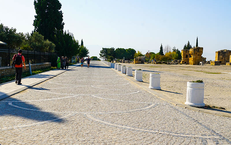 通往棉花堡温泉的大道。路边可见古城遗址。