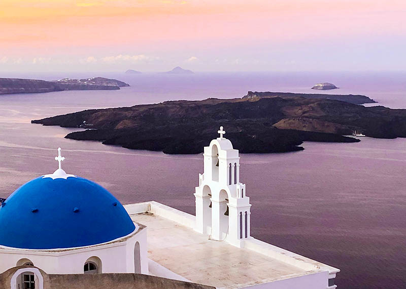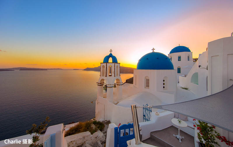 嘿!看到了这个圣托里尼的地标蓝顶教堂!