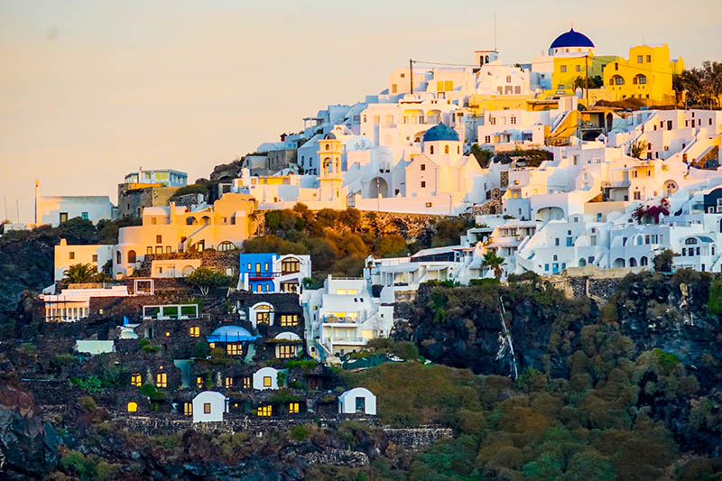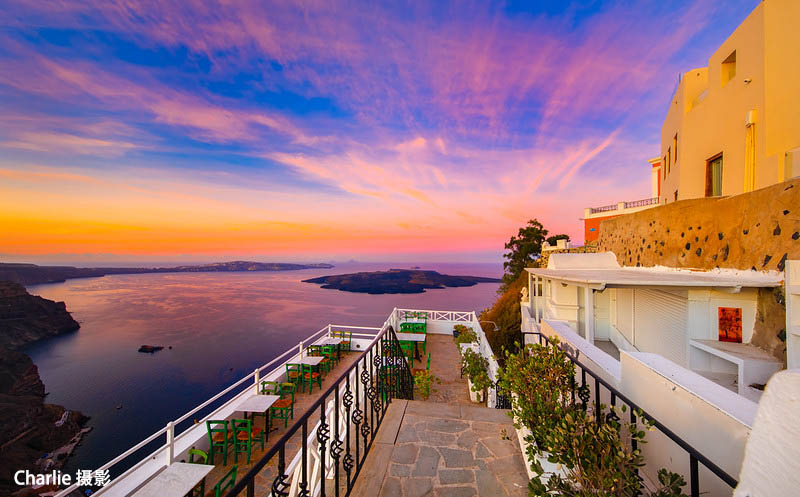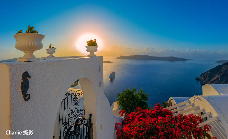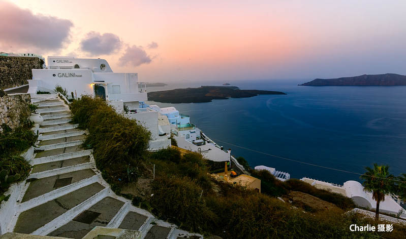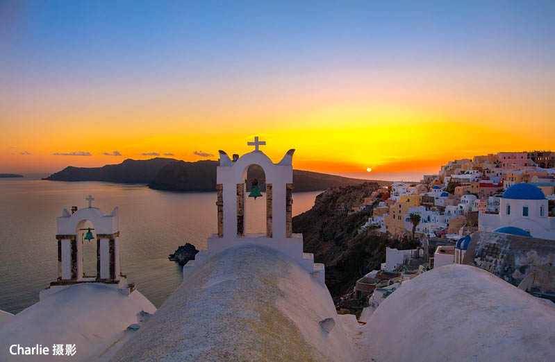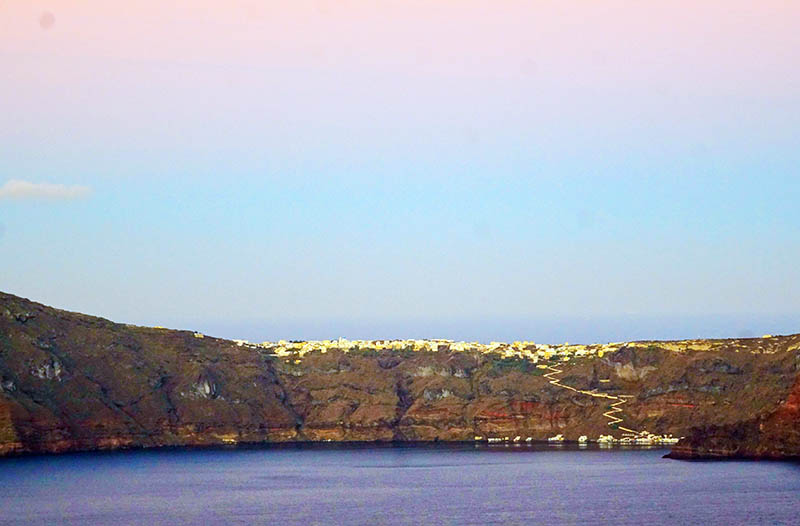 登上山顶,遥看对面的伊亚小镇,那白色的房屋,像是山顶上的白雪。