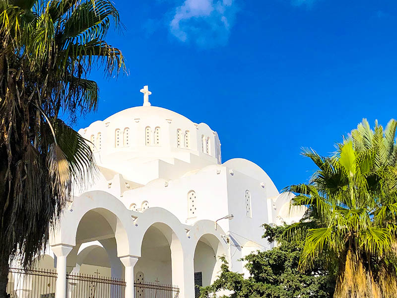 著名的圣托里尼岛东正教大教堂(Orthodox Metropolitan Cathedral)。