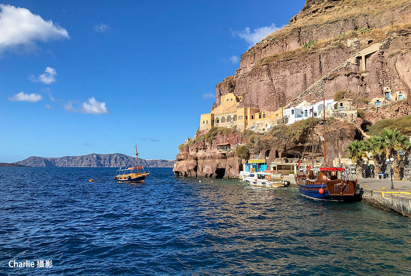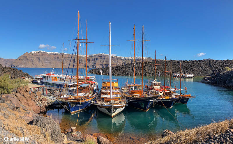头一天在圣托里尼全岛游时,问过导游有没有乘船出海的一日游。导游说旅游忙季有许多游轮项目,还有看日落吃晚餐的,但现在都歇冬了。
