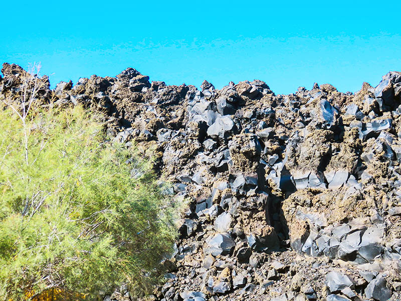 岛上到处都是黑漆漆的火山石。列宁同志兴奋地拍了一段石缝中冒气的视频,作为活火山的证据。