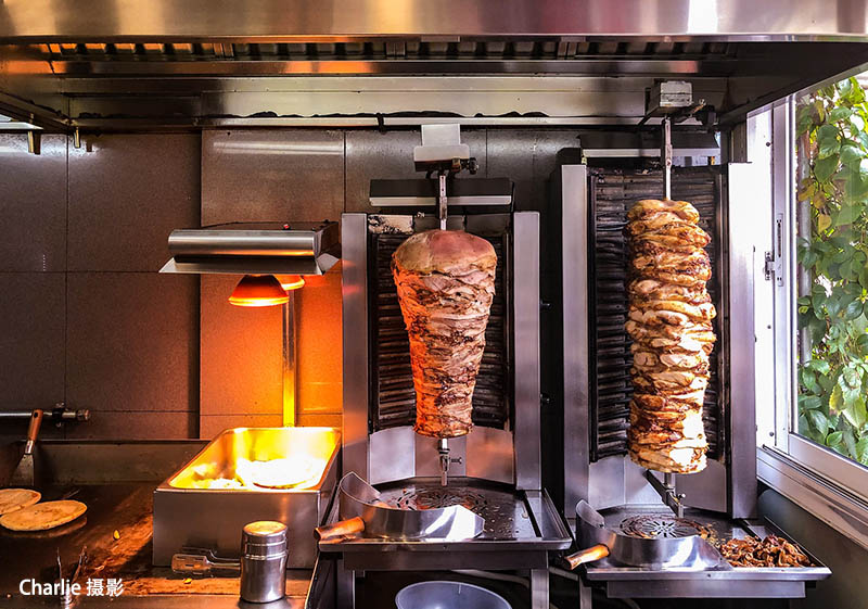 烤肉有猪肉和鸡肉,大饼里放上酱料,卷上新鲜蔬菜和烤肉,好吃极了。真是名不虚传啊。每个人只花了2欧元,吃得心满意足,并且一直到晚上都不觉得饿。