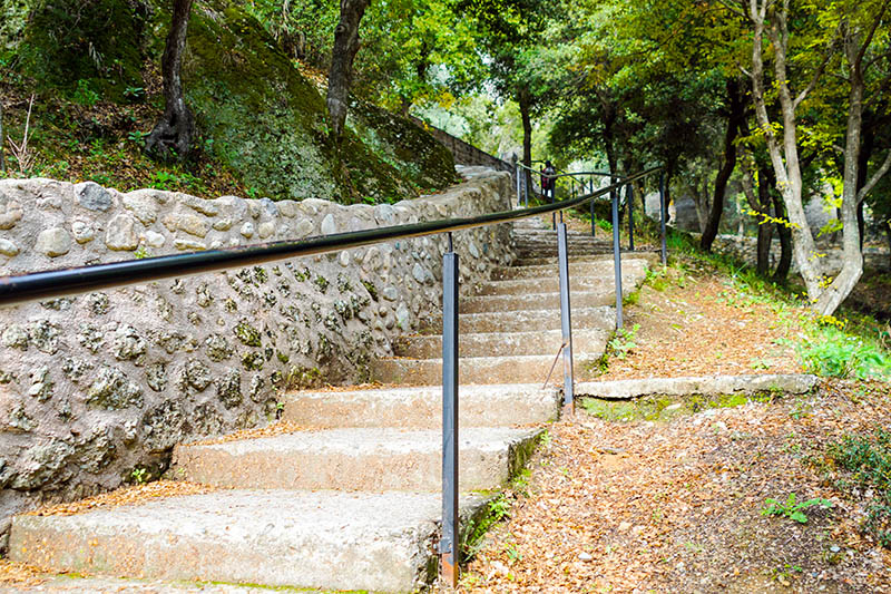 修道院建在峭壁顶上。车子一直开到山脚下,然后顺着石阶向上爬。