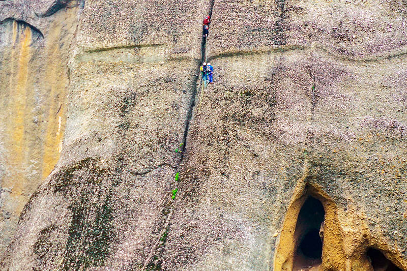 从十一世纪起,一些想远离凡尘俗世的希腊东正教的教徒找到了这个地方。他们隐居在此,在这如同天柱般的险峻的山峰上修行。