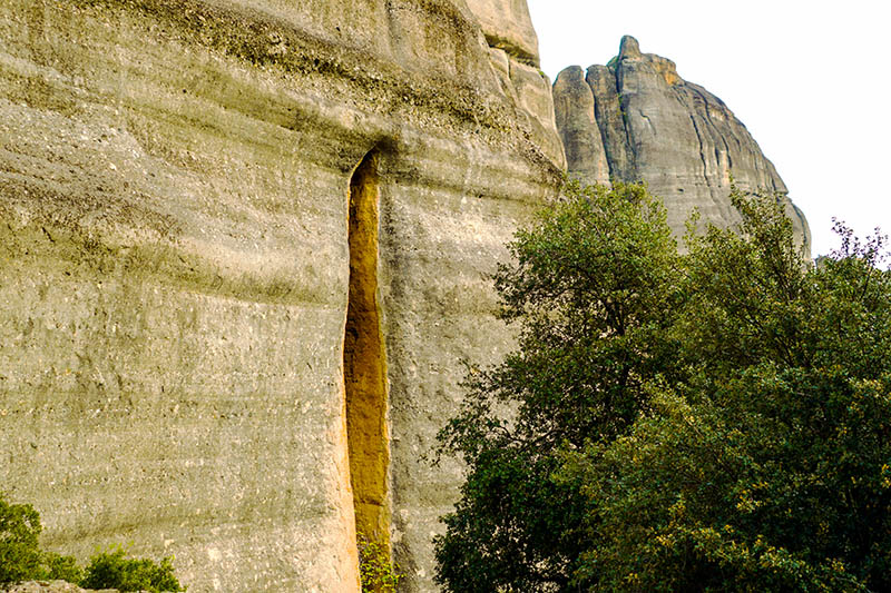 导游指着岩壁上的石缝告诉我们,那是修道士受惩面壁的地方。如违反道规,就要在石缝里面壁数月。