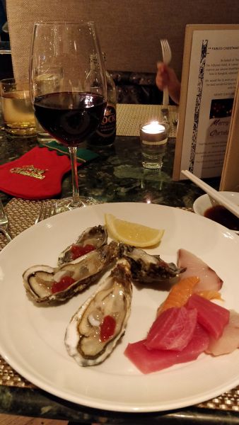 先回家了。晚上平安夜包肥,在美国时小阿立就已订好,在一豪华旅馆,海鲜包肥。