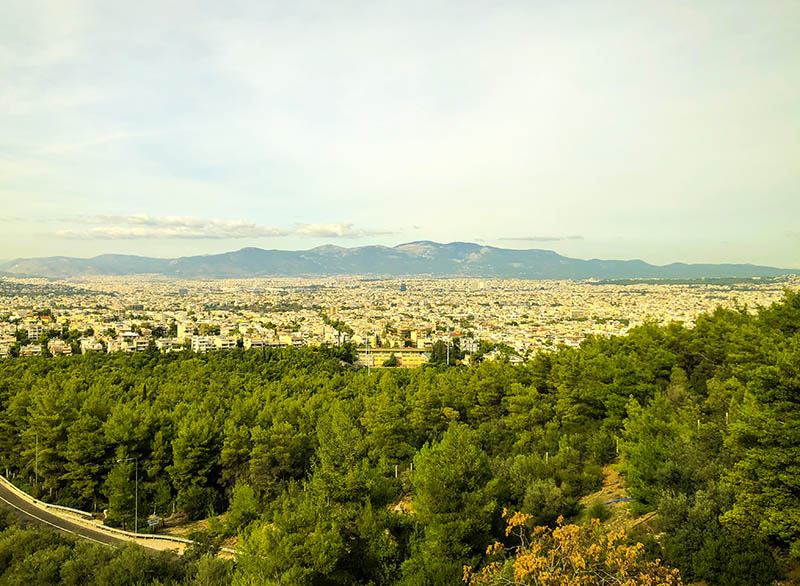 司机告诉我们,雅典四面环山,一面傍海,处于中心平原地带。从山上看,整个市区像是在山谷里。