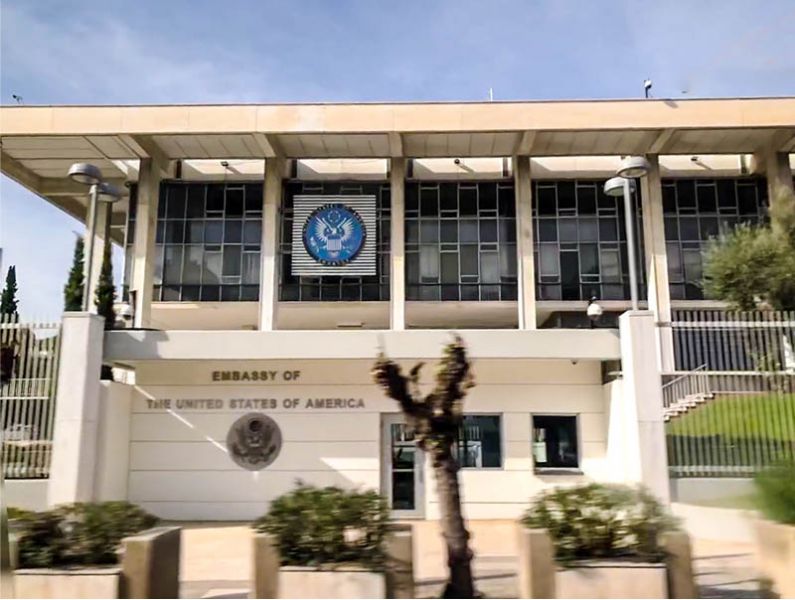 车子驶入市区后,司机不断为我们介绍景点。看到了美国驻希腊使馆。