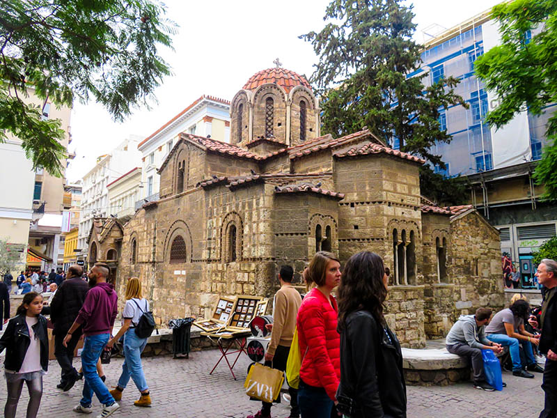 步行街的小教堂(Church of Panagia Kapnikarea)建于大约十一世纪,有一千年的历史了。如今,教堂的周围是雅典最繁华的商业区。现代之中夹杂着古典。