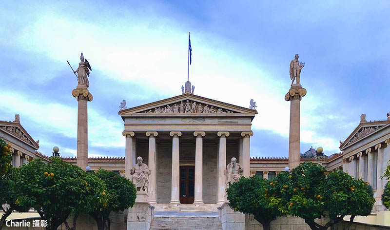 从公园出来,在回旅馆的路上,停留在雅典科学院(Academy of Athens)。