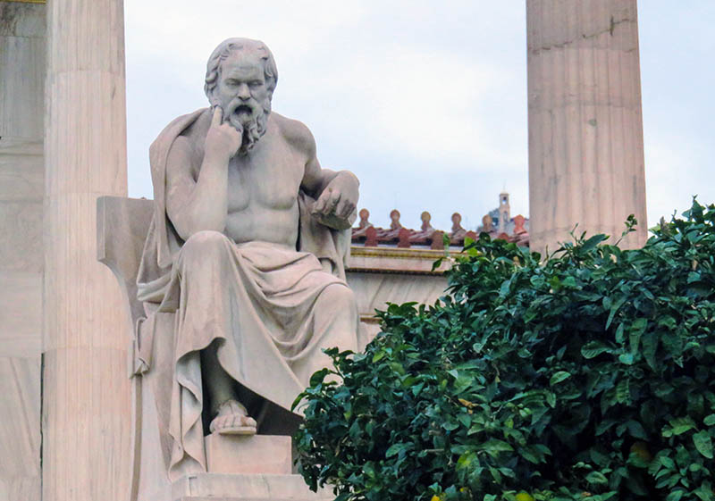 希腊神话里的雅典娜是智慧和艺术的女神,她诞生在雅典。雅典果然由此而人才辈出。柱子下坐着的这两位就是世界顶级人物。