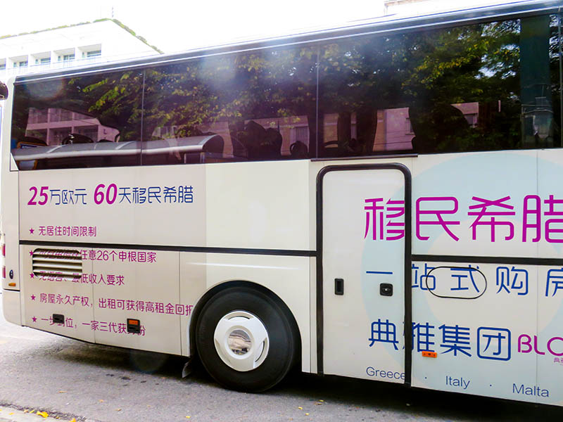 街上行驶的大巴车上竟有方方正正的中国字。看来这个文明古国很欢迎中国移民啊。
