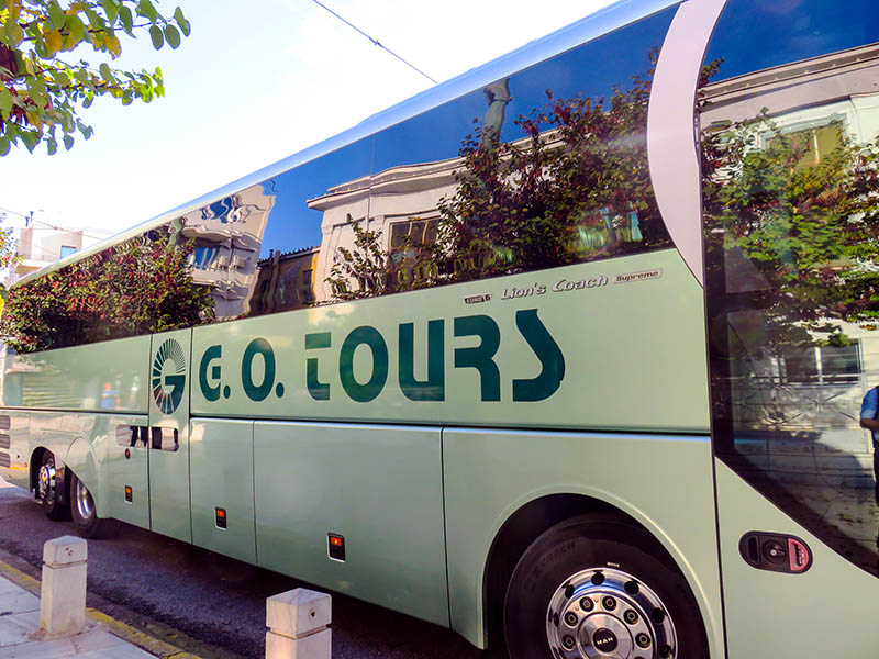 这恐怕是典型的雅典旅游大巴了,可以坐五、六十人。游览景点最不喜欢的就是坐这种大巴。人太多,导游讲的听不清,一大堆人在一起连照相都照不好。