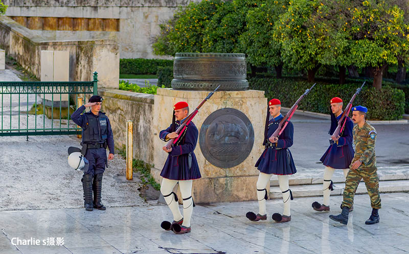 没想到正值换岗,我们有幸在车上看到了皇家卫队换岗仪式。