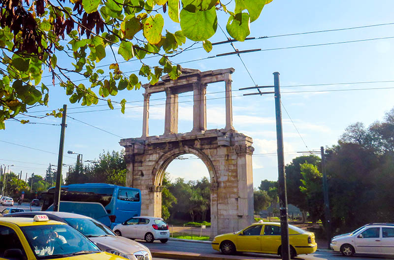 这个立于交通繁忙,电线杆林立的闹市中的古老的建筑是哈德良拱门(Arch of Hadrian)。据说兴建这座拱门是为了庆祝罗马皇帝哈德良在公元131或132年的到访。