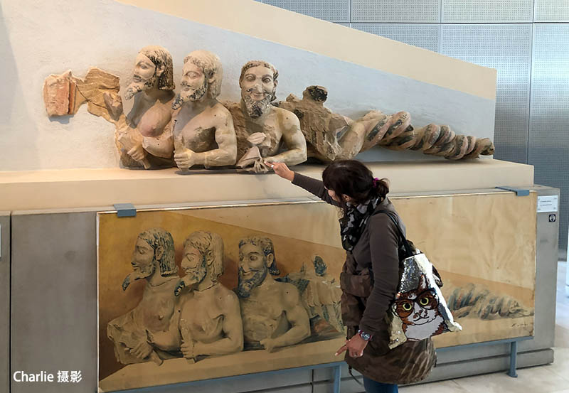 导游为我们讲解,这组雕塑是卫城最早的建筑的一部分。是在帕特农神庙附近发现的。