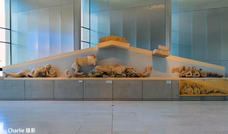 前面提到,博物馆的建筑是和帕特农神庙同一方向,同样矩形,长宽同等比例。挖掘出来的浮雕被安排在中心的大型结构上,其尺寸和帕特农神庙的空间相等。浮雕的顺序,位置都最大限度的还原帕特农神庙的建筑空间。