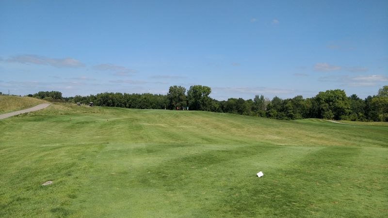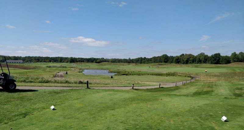 还有一个4人组开球,然后是我们。比预定开球时间晚了15分钟。而且之后几乎每一洞都要等前面的那组往前走了才开球。耐心等待,大家闲侃聊天、抖科。