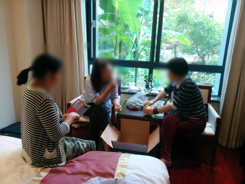 宾馆前台和领队之一的丽达会和。丽达先招呼前台美眉安排阿立入住,歪果仁大单间(豪华套间今晚没有了,阿立一人也不需要豪华套间)。
