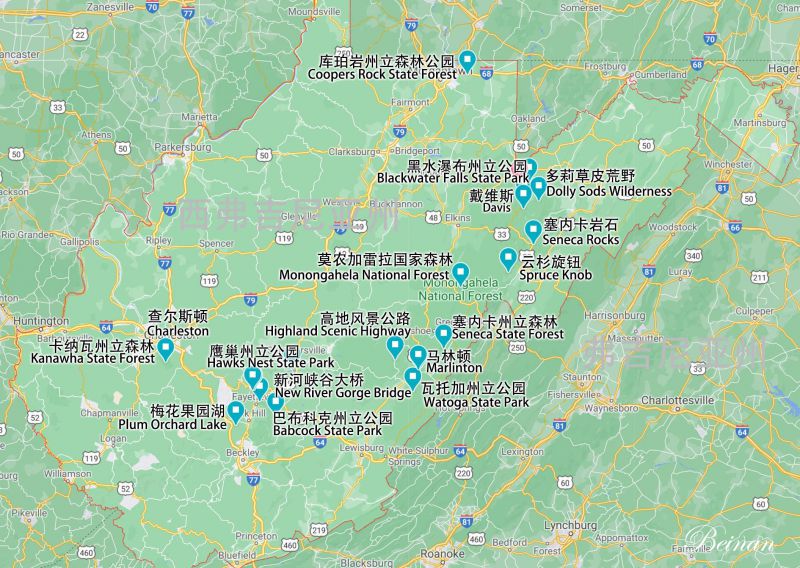 西佛吉尼亚是“大山之州”,整个州内地面平均高出海平面460米。全州有40多个森林和公园。其实整个西维州,就是一个大森林。