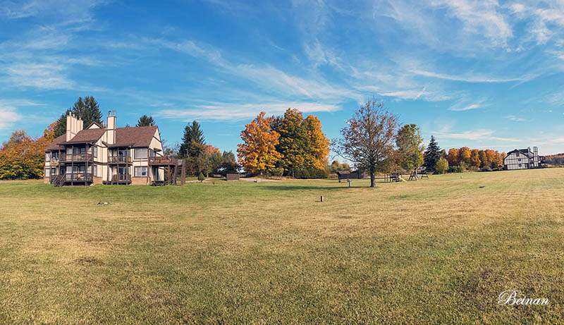坐落在坎农谷(Canaan Valley)的这个小小的度假村只有两栋房子,每栋房子5套公寓。疫情期间,没有游客,我们是这栋房子唯一的客人。远处的另一栋房子也只有一家客人,只看到一辆车。