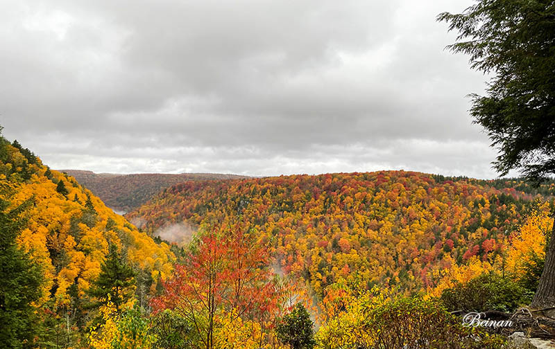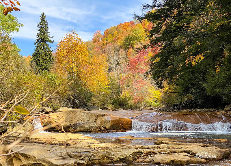而最使我们震撼的美景是在黑水瀑布旅馆(Blackwater Falls Lodge)后面的山谷。