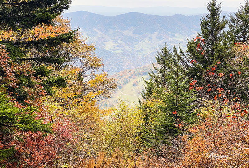沿着顶峰的人行步道,全方位欣赏美丽的阿帕拉契山秋景。