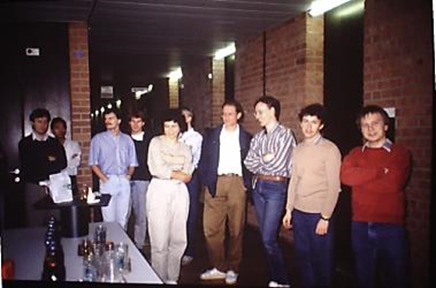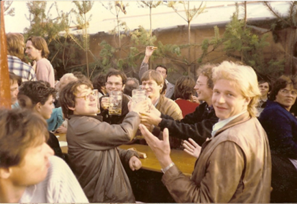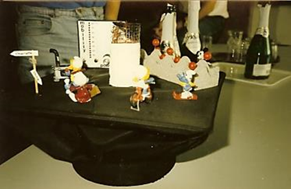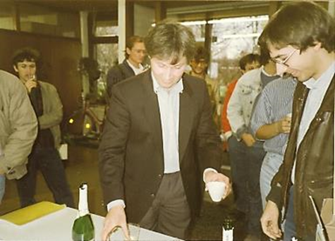 在所有聚会中,最感人的是博士论文答辩后的庆祝会,虽然那只是在走廊上的香槟酒会。E16每年有两至三位博士生完成论文。每当有博士生完成了论文,进行论文答辩,那是E16的大喜事,大家都来参加庆祝会。