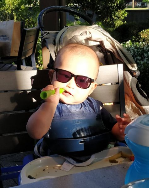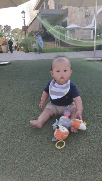 其实他还只有两颗小小门牙。只是让他习惯饭后清牙。