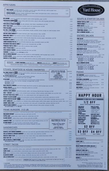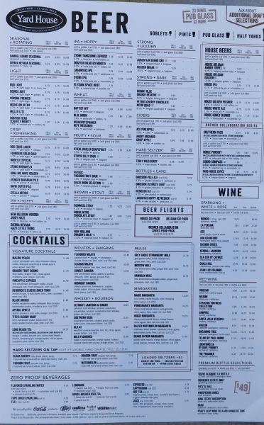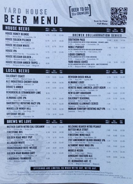 今天咱们去餐馆美食。这餐馆叫《一码屋》(Yard House)。‘一码’大有讲究,暂且按下。待聊到啤酒时自有分解。